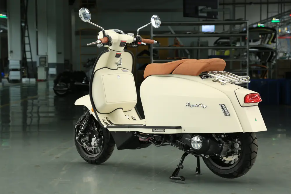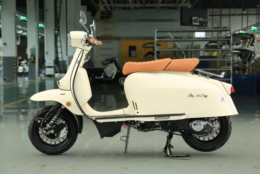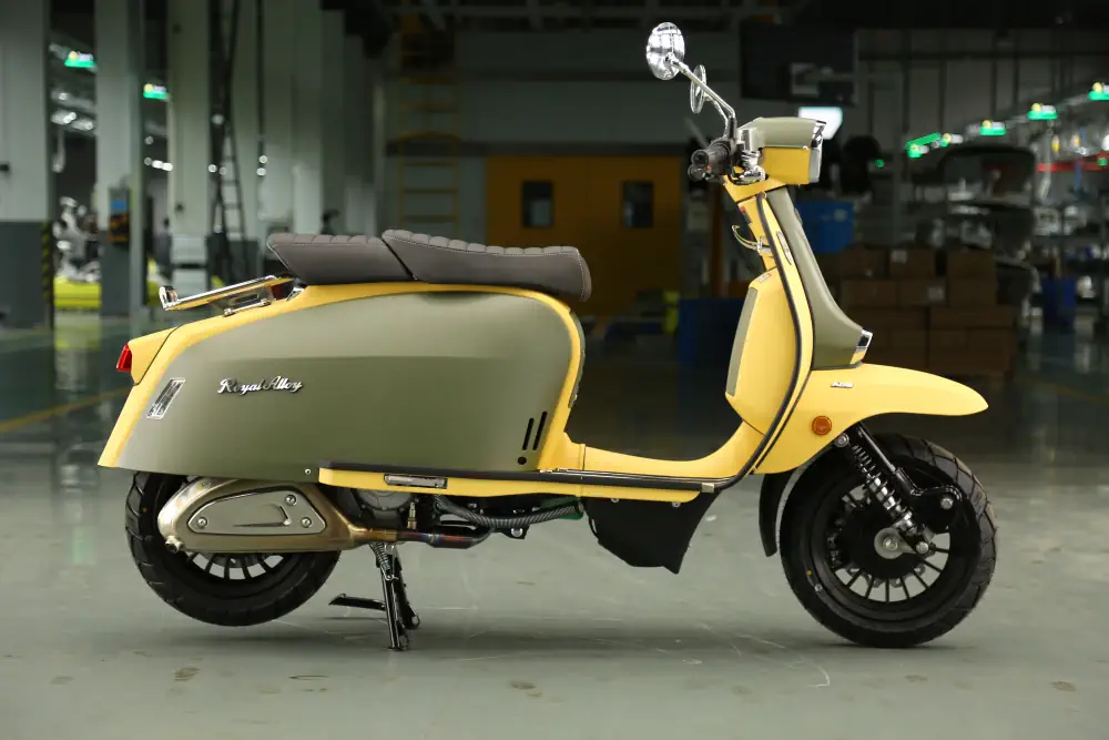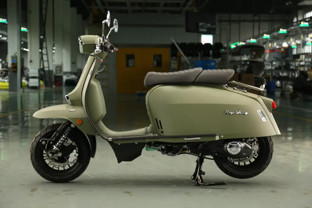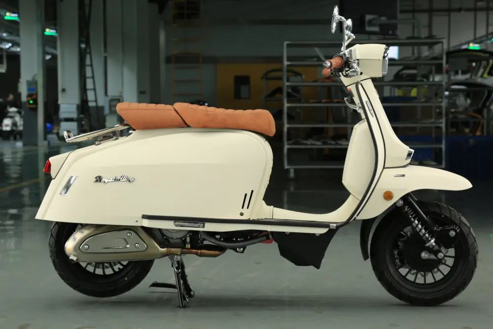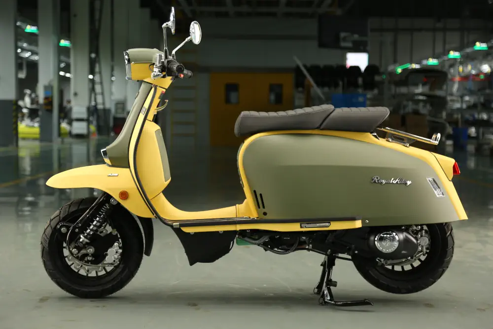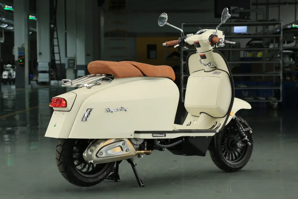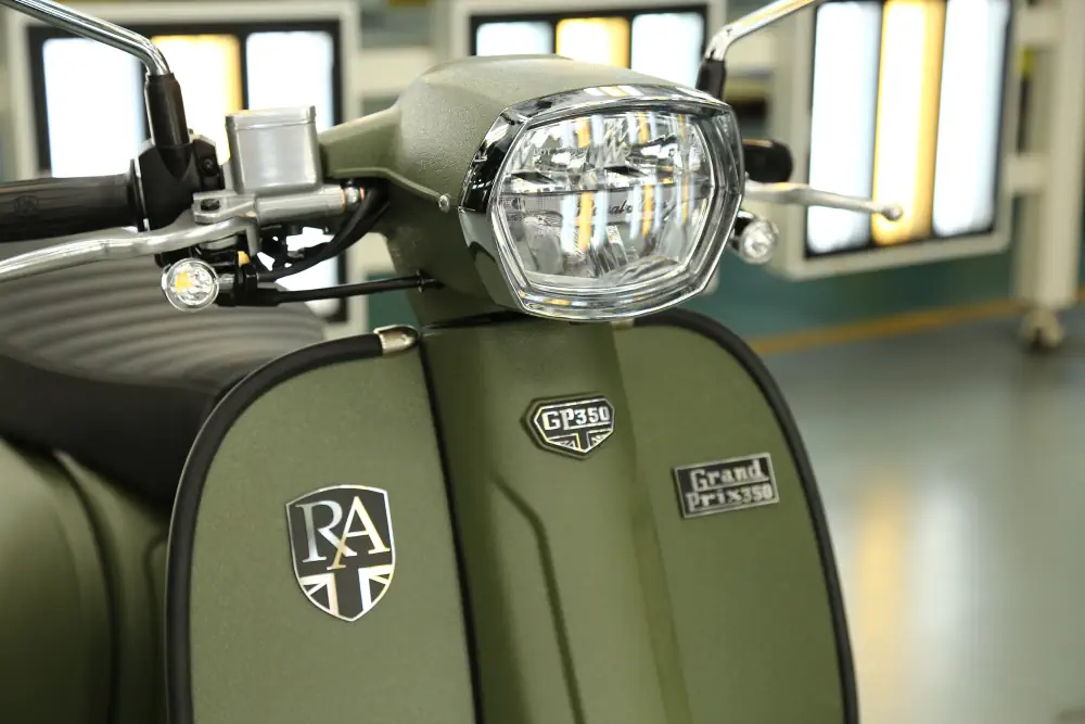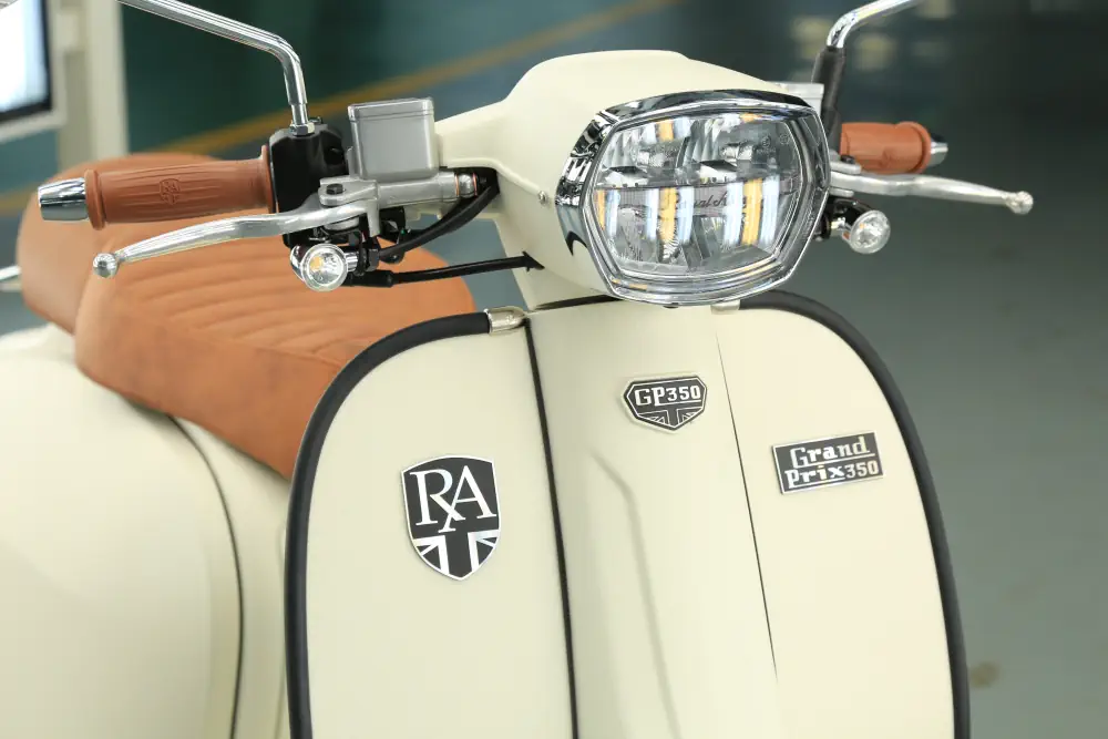 Der Royal Alloy MT 350 ist die kraftvolle Antwort für alle, die das markante Design der MT-Serie lieben, aber deutlich mehr Leistung unter der Haube wünschen. Mit seinem durchzugsstarken 350 ccm Motor und dem serienmäßigen ABS-System ist dieser Roller nicht nur ein optisches Statement, sondern auch ein souveräner Begleiter auf Landstraßen und Autobahnen. Hier trifft modernes Retro-Design auf echte Performance.