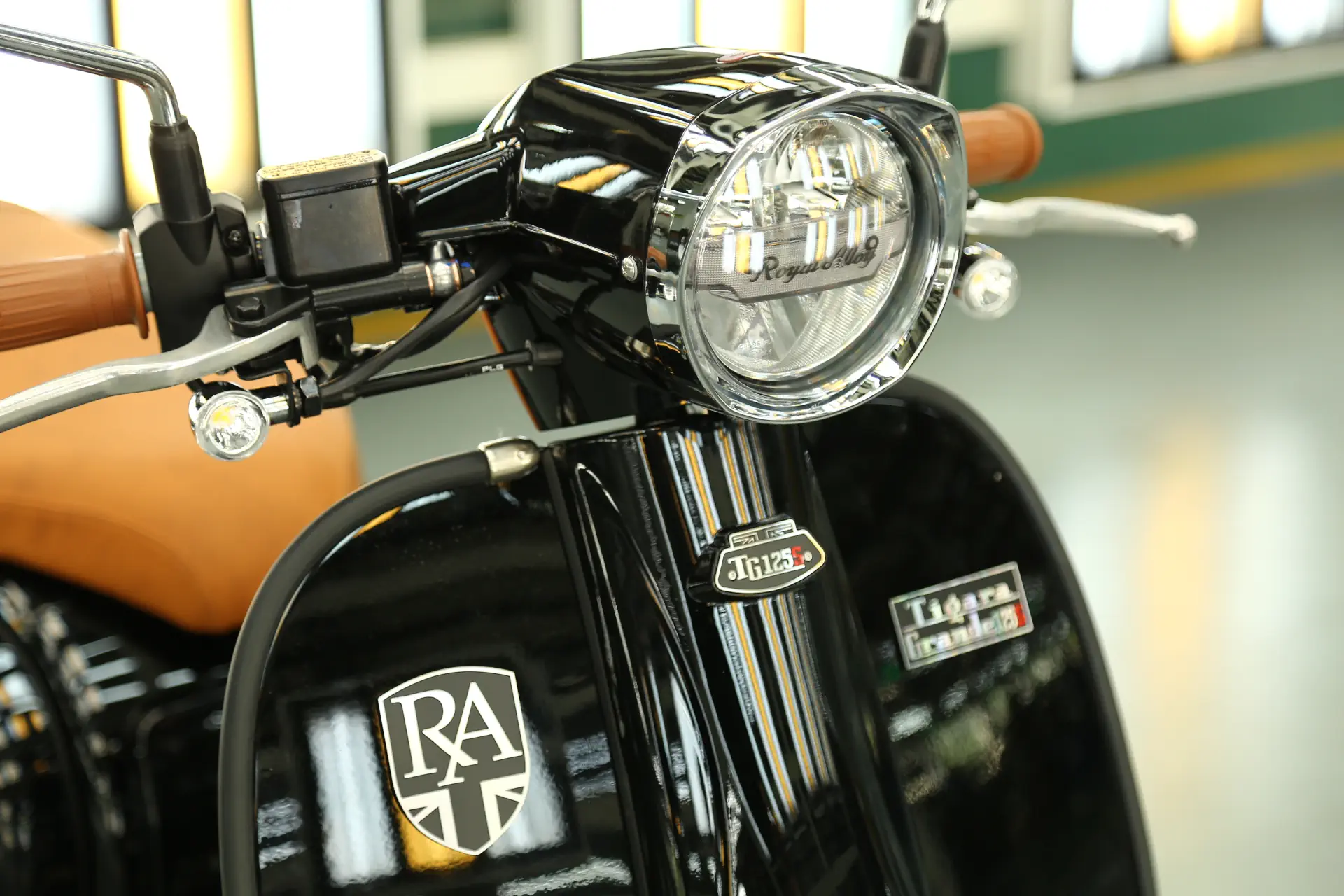 Wer das klassische Roller-Design der 60er Jahre in seiner reinsten Form sucht und dabei die Vorzüge eines 125ers genießen möchte, findet im Royal Alloy TG 125 seinen perfekten Begleiter. TG steht für „Touring Grand“ – und auch als 125er macht dieser Roller seinem Namen alle Ehre. Die ausladenden Seitenhauben, die tiefe Linienführung und der runde Scheinwerfer verkörpern den Inbegriff des britischen Scooter-Lifestyles. Ein Roller, der Aufsehen erregt und dabei in Österreich bequem mit dem B-Führerschein (Code 111) gefahren werden kann.