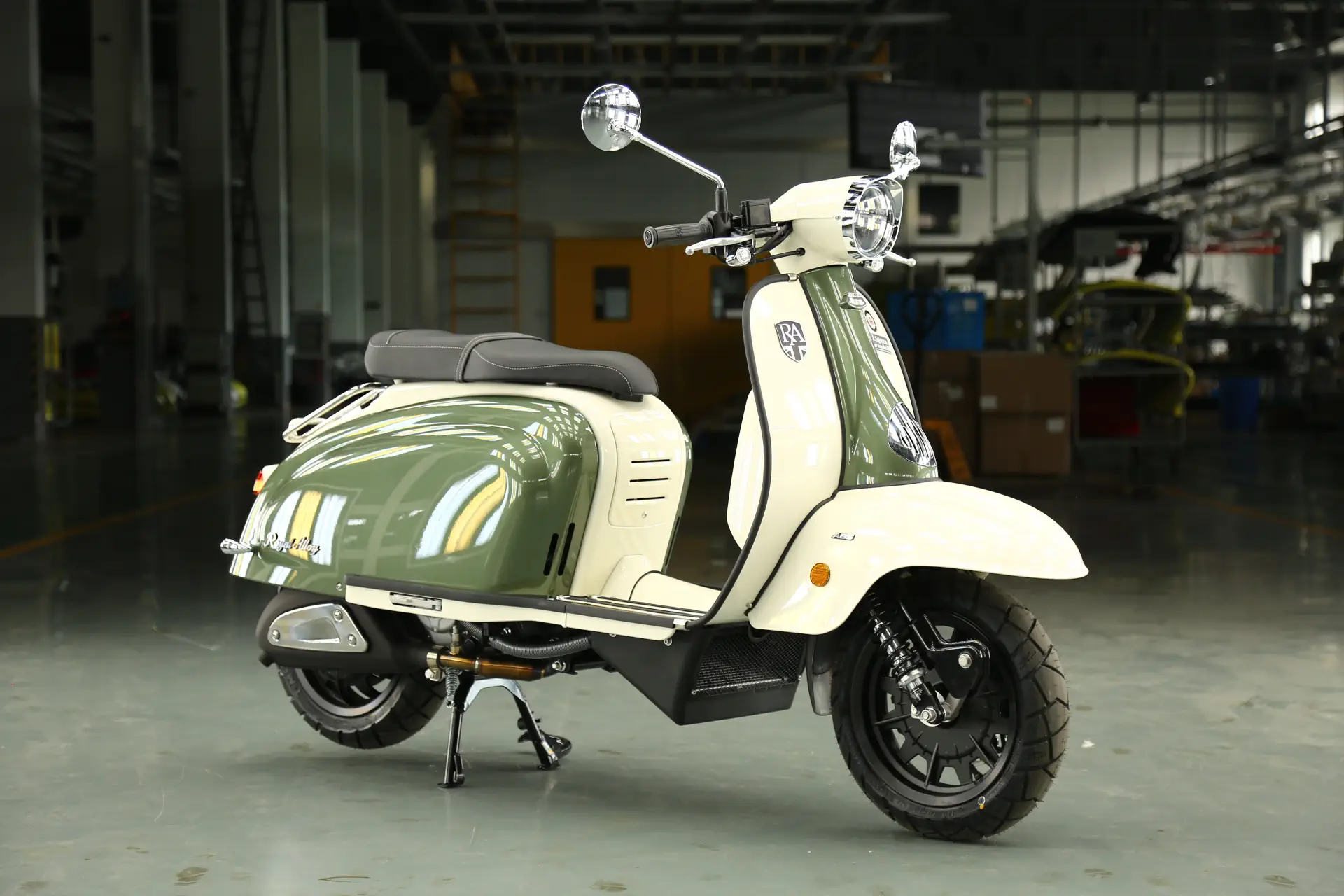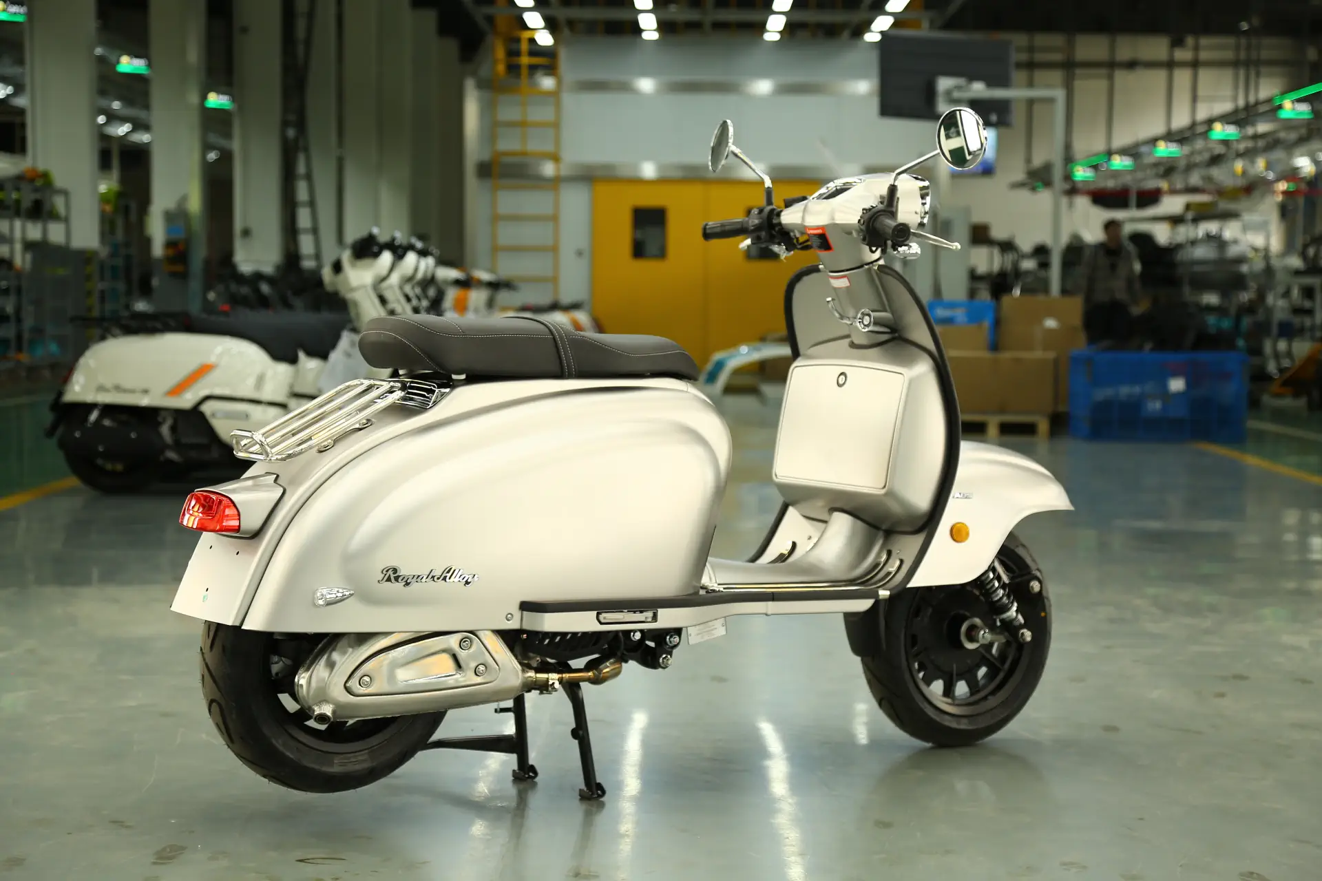 Royal Alloy entstand aus dem Wunsch, echte Blechroller zu bauen, die dem Original treu bleiben, aber die Schwächen alter Technik hinter sich lassen. Keine Plastikverkleidungen, die beim ersten Hinsehen enttäuschen, sondern massives Metall, das Wertigkeit ausstrahlt. Das Design ist eine tiefe Verbeugung vor den legendären Rollern der 60er und 70er Jahre. Jede Rundung, jede Chromleiste und jeder Scheinwerfer atmet Geschichte.